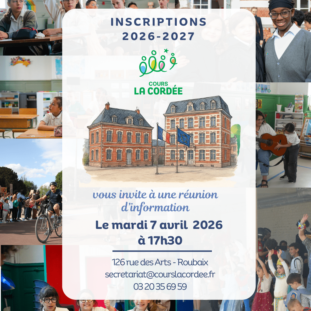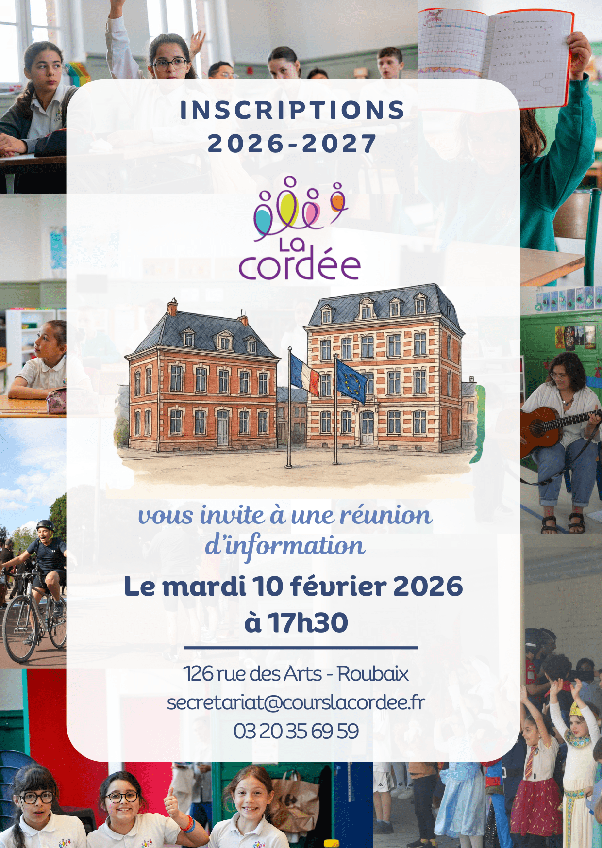 École du réseau national Espérance banlieues implantée en plein cœur de Roubaix, La Cordée est une école associative et indépendante, libre de sa pédagogie et financée à 100% par des dons privés. Elle a été créée en 2015 par des membres de la société civile, tous bénévoles, et grâce au partenariat enthousiaste et généreux d’entreprises et fondations de la région du Nord essentiellement.