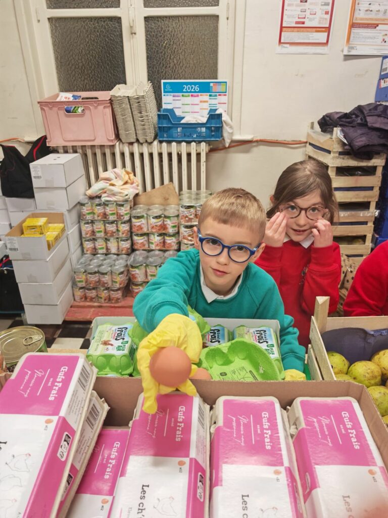Les élèves de CP ont récemment vécu une expérience particulièrement marquante : participer à une action solidaire aux côtés des équipes des Restos du Cœur. Une immersion concrète dans le monde de l’entraide et du partage, qui leur a permis de découvrir que la solidarité se vit aussi dès le plus jeune âge.
